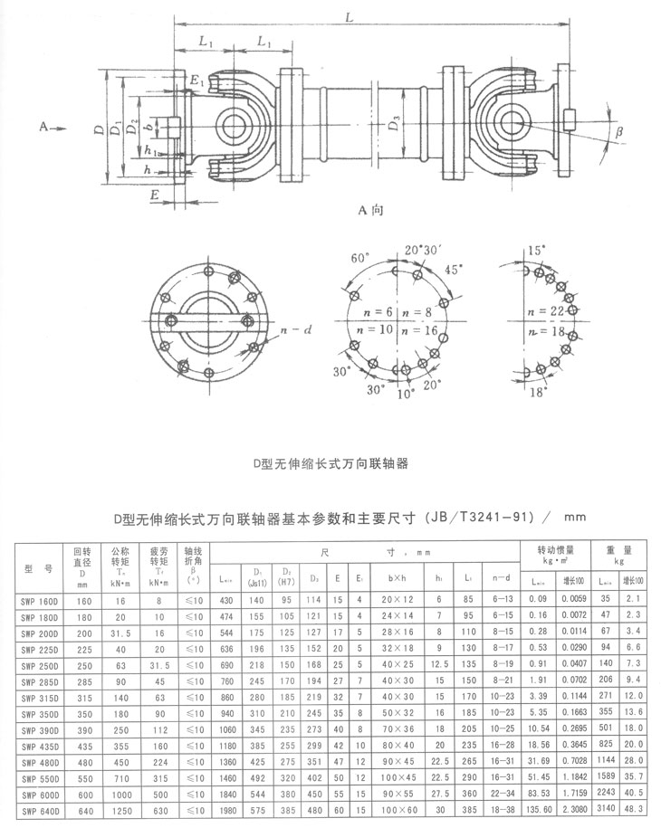 D型無伸縮長(zhǎng)型萬(wàn)向聯(lián)軸器基本參數(shù)和主要尺寸