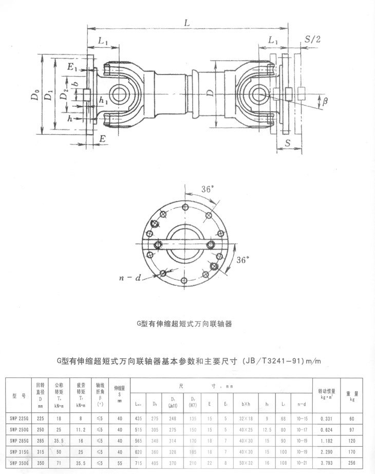 G型有伸縮超短型萬(wàn)向聯(lián)軸器基本參數(shù)和主要尺寸