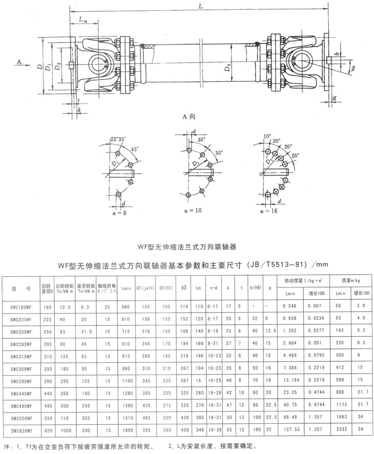 WF系列無伸縮短式萬(wàn)向聯(lián)軸器基本參數(shù)和主要尺寸