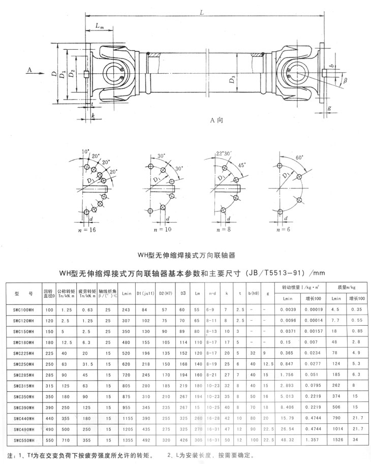 WH系列無伸縮短式萬(wàn)向聯(lián)軸器基本參數(shù)和主要尺寸