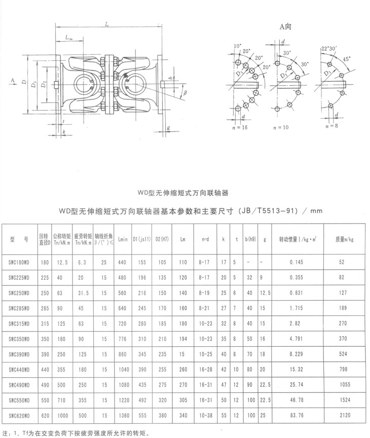 WD系列無伸縮短式萬(wàn)向聯(lián)軸器基本參數(shù)和主要尺寸