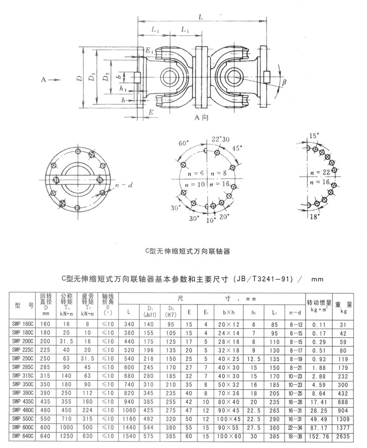 C型無伸縮短型萬(wàn)向聯(lián)軸器基本參數(shù)和主要尺寸